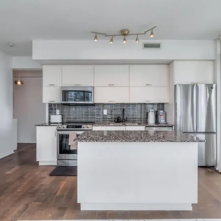 There is an equipped kitchenette at Downtown 2Br Condo With City Views And Free Parking villa complete with an electric kettle, a refrigerator, and kitchenware. This property is within 600 metres of 360 The Restaurant at the CN Tower, serving Canadian dishes. Downtown 2Br Condo With City Views And Free Parking villa is 10 minutes' drive from Billy Bishop Toronto City airport and not far from Toronto Union train station.